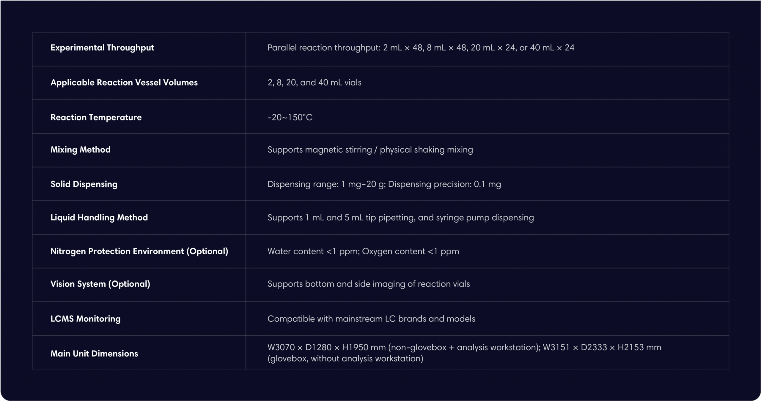 The XmartChem workstation enables the full automation of the entire chemical synthesis process, including solid and iquid dispensing, reaction, product dilution, transfer, filtration, and LC-MS analvsis. it allows flexible configuration of reaction volume, temperature, inert atmosphere, and operational methods according to R&D needs. The system performs automated LC-MS spectrum analysis and calculates product peak areas, and utilizes Al to determine whether the product meets the quality standards required for subsequent reaction steps. lt overcomes the bottleneck of traditional manual synthesis and reaction condition screening, enabling high-throughput experimental parameter optimization, liberating laboratory manpower, and significantly improving efficiency.